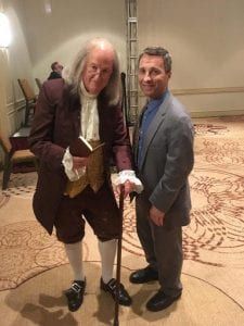 Mark Skousen, a descendant of Benjamin Franklin, meets with Paul Dykewicz in Philadelphia.