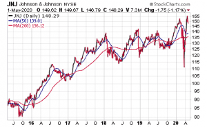 Johnson & Johnson ranks as one of 30 companies known as Dividend Kings that have boosted their annual payout for at least the past 50 years. Johnson & Johnson announced on April 14 that it raised its dividend from 95 cents a share to $1.01, up 6.3%, beating Wall Street’s earnings and revenue expectations, while scaling back its full-year 2020 financial guidance to adjusted earnings per share of $7.50-$7.90 from $8.95-$9.10.