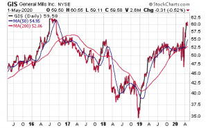 General Mills features some of America’s best-known brands, not only including Cheerios, but also Häagen-Dazs, Yoplait, Pillsbury and Betty Crocker, while offering no economically cyclical risk. Aside from producing relatively consistent low-unit growth for the last few years, General Mills can benefit from the growing trend of consumers shopping from home to avoid venturing to a store and risking exposure to the coronavirus.
