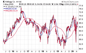 Kellogg Company (NYSE:K), of Battle Creek, Michigan, offers a 3.48 percent yield and reported “decent” first-quarter results on April 30, despite COVID-19, Kramer said. Aided by brands such Pringles, Cheez-It, Special K, Eggo, Kashi and MorningStar Farms, Kellogg officials said global demand for its products grew “significantly” in March, as consumers stocked up on packaged foods amid government-imposed stay-at-home mandates.