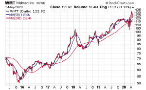 Walmart Inc. (NYSE:WMT), of Bentonville, Arkansas, has increased its annual cash dividend every year since first declared a $0.05 per share payout in March 1974. Walmart, a giant retailer of groceries and household products, seized an opportunity amid the COVID-19 crisis to announce on April 30 that is it expanding its new Express Delivery service. Consumers can request delivery of items from its stores in less than two hours.