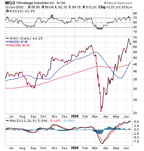 “Their stocks haven’t appreciated as much, but these companies will benefit from a continuing boom in RV sales,” Carlson told me.