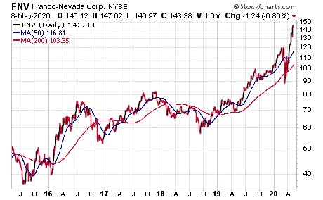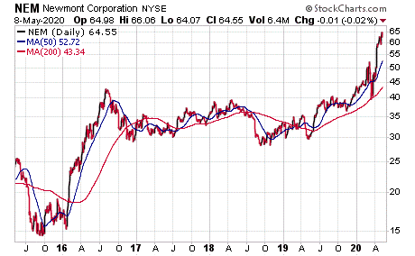 The five dividend-paying gold investments have been lifted by the Federal Reserve’s easy-money policies, historically low interest rates and public statements by its chairman to pursue whatever steps are needed to aid the economy during the crisis caused by the new coronavirus, named COVID-19 by the World Health Organization. Gold has zoomed nearly 12.2% so far this year through May 6, in contrast to a pullback in stocks and silver.