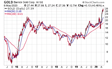 Toronto-based Barrick Gold (NYSE: GOLD) is up more than 50% in six weeks after its recommendation in the Five Star Trader advisory service led by Mark Skousen, PhD, an economist who also is a Presidential Fellow at Chapman University. Skousen, named winner of the inaugural Triple Crown in economics during 2018 and one of the 20 most influential living economists, recommended the gold mining stock and related call options on March 24.