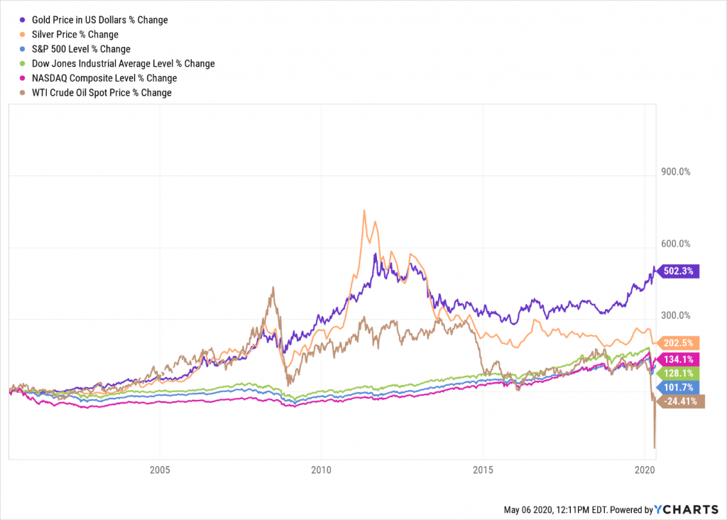 WTI Crude Oil spot prices have plunged 66.5% thus far in 2020 but they had been down 80% the week before, so oil is showing early signs of recovery. The price of gold has climbed past $1,700 an ounce, and some prognosticators predict it could touch $2,000 or higher next year.