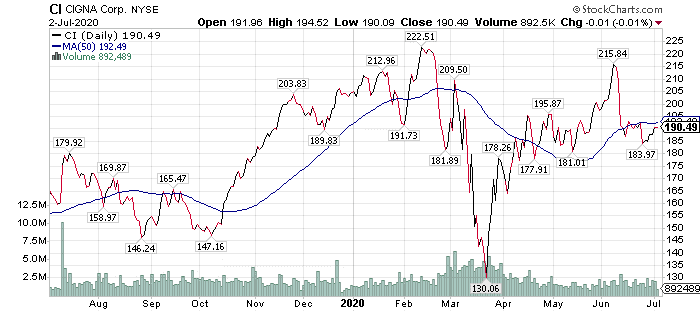Even with Cigna’s share price closing at $190.49 on July 2, it would rise more than 25% to reach the investment bank’s price objective for the stock. The Bernstein investment firm hiked its target on Cigna to $223 on May 4, but also downgraded the shares to “market perform” from “outperform” due to business risks from the coronavirus and the ongoing recession.