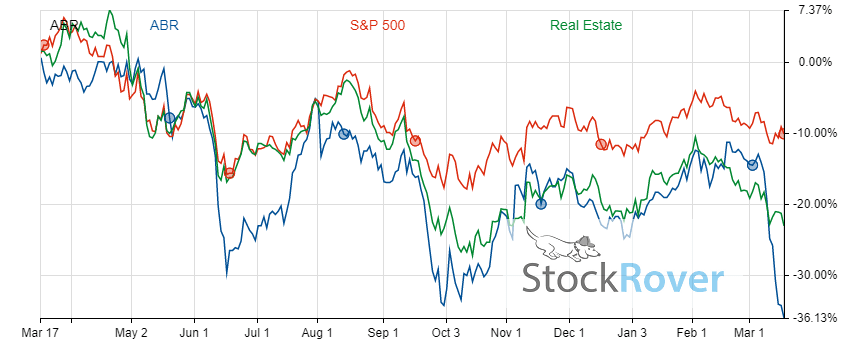 In addition to a steady dividend income, ABR has rewarded its shareholders with robust asset appreciation in the long term, but its stock has dropped significantly in 2023. ABR shares have decreased in value by 36.5% in the last year, representing a dangerous low but also potential buying point for opportunistic investors.