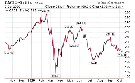 Unlike Ammo, Inc. and Sportsman’s Warehouse that have notched 100%-plus gains in their share prices so far this year, CACI International could offer a comparative bargain with its share price down 5.17% in the past month, up 9.15% for the past three months and sliding 14.62% since the start of the year. It has a price-to-earnings (P/E) ratio of 16.92 and is not currently paying a dividend, so investors seeking immediate income may prefer to look elsewhere.