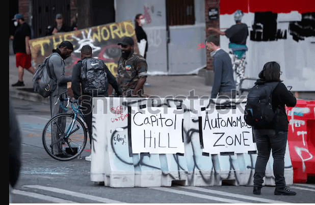 The BHAZ acronym spray painted on St. John’s Episcopal Church in Washington, D.C., appeared to be a variation on the Capitol Hill Autonomous Zone created in Seattle, Washington, that later became known as the Capitol Hill Organized Protest (CHOP), comprised of several blocks that protestors took over and police abandoned with the consent of the city’s mayor on June 8. Without police in that area, six people were shot and two died from their wounds during the next several weeks, amid reports of sexual assaults and other crimes. When that social experiment unraveled, Seattle Mayor Jenny Durkan ordered the dismantling of the autonomous CHOP zone just weeks after she said during an interview on CNN that it could usher in “a summer of love.”