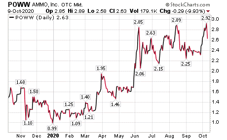 Jim Woods, a firearms expert and former U.S. Army commando who later served in the National Guard, said he likes ammunition maker AMMO, Inc. (OTCMKTS:POWW), of Scottsdale, Arizona.
