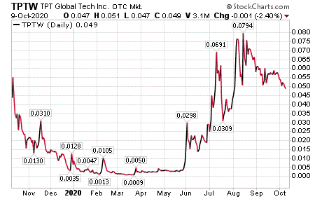TPT Global Tech Inc. currently is not profitable, does not pay a dividend and is another speculative stock for investors who can afford to take a risk and remain patient. The stock’s share price is down 14.29% for the past month and up 0.62% for the past three months, 597.14% so far this year and 8.08% for the last year.