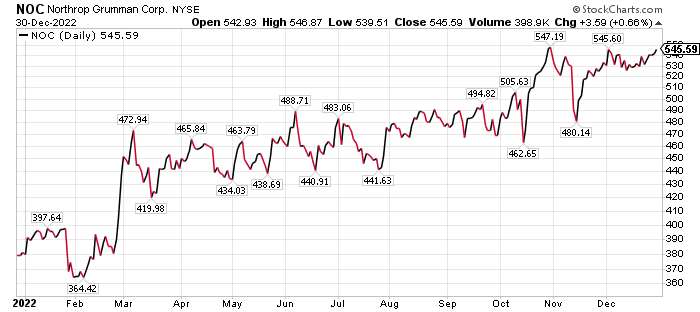 Michelle O’Connell, who leads Dallas-based Portia Capital Management, recommends Northrop Grumman. The company’s involvement in the growing space launch program only enhances its appeal, she told me. The market likes Raytheon, as well, as the stock rocketed 42.71% in 2022.