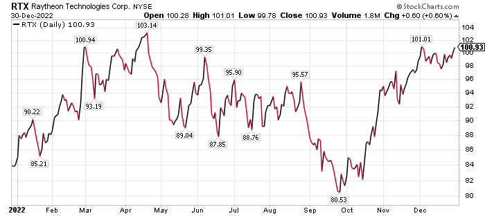 Despite the market falling overall in 2022, Raytheon rose 19.33% for the full year.