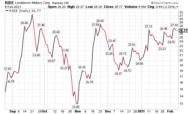 Lordstown Motors, which completed its initial public offering (IPO) on October 29, 2020, now trades on the NASDAQ under the ticker symbol RIDE.