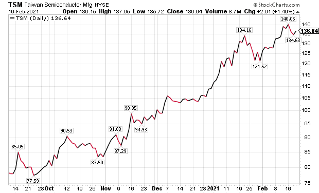 To take advantage of this situation, Woods recommends Taiwan Semiconductor Manufacturing in the Tactical Trends Portfolio of his Intelligence Report investment newsletter.