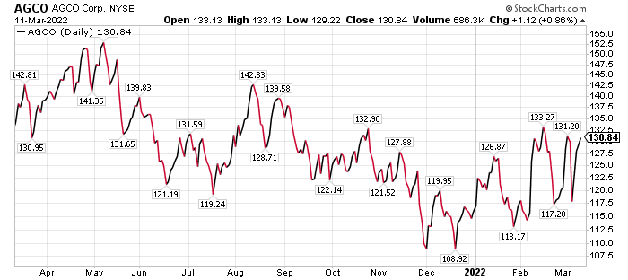 One of two agricultural equipment investments favored by seasoned investment professional Bryan Perry is AGCO Corporation (NYSE: AGCO), an farm machinery manufacturer founded in 1990 and headquartered in Duluth, Georgia. AGCO designs, produces and sells tractors, combines, foragers, hay tools, self-propelled sprayers, smart farming technologies, seeding and tillage equipment.