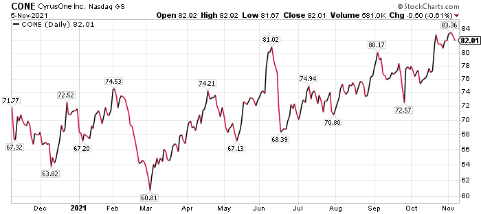 ISI Evercore wrote positively about the recent return of David Ferdman, CONE’s co-founder, as the company’s chief executive officer, meriting an “attractive valuation” that creates a “tactical buying opportunity” in the stock. The investment bank gave the stock an “outperform” rating and a target price of $100 per share.