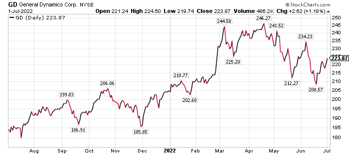 General Dynamics (NYSE: GD), a global aerospace and defense company based in Reston, Virginia, is a recommendation of stock picker Jim Woods in his monthly Intelligence Report investment newsletter. The company produces combat vehicles, nuclear-powered submarines and communications systems to provide safety and security.