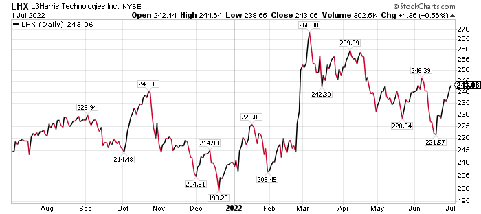L3Harris (NYSE: LHX), a Melbourne, Florida-based defense contractor and information technology services provider that produces C6ISR systems and products, wireless equipment and tactical radios, also netted a buy recommendation from BofA. The defense company, consisting of Integrated Mission Systems; Space & Airborne Systems, and Communication Systems, received a $285 price objective from BofA.