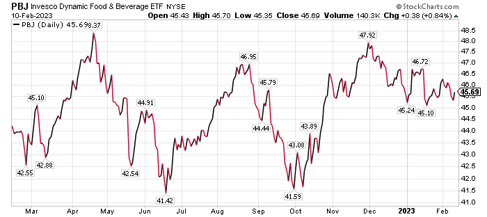 The fund’s dividend yield is hovering around 1.8%, while its share price has jumped 2.61% in the last 12 months. PBJ is down 1.80% for the past three months but up 2.61% over the last four weeks.