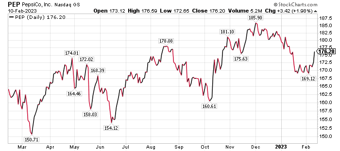 While Pepsi had a good performance in 2022, the stock is off 4.36% year to date. Wall Street analysts estimate that the stock has upside of 10-15% over the next 12 months, Connell told me.