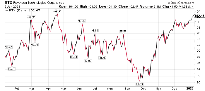 Despite the market falling overall in 2022, Raytheon rose 19.33% for the full year and has the potential to climb further in 2023.