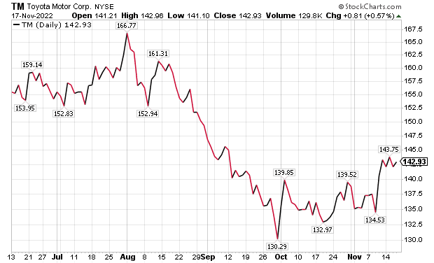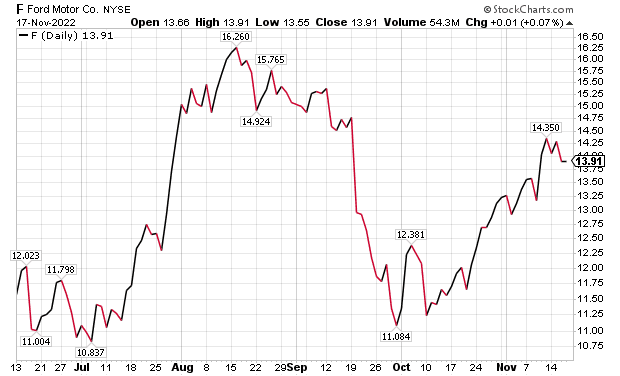 “In the near term, I expect the legacy auto makers’ stocks to do poorly because of slower economic growth and rising interest rates,” Carlson said. “But they’re already down significantly in 2022 and will have strong returns once the economy turns up.”