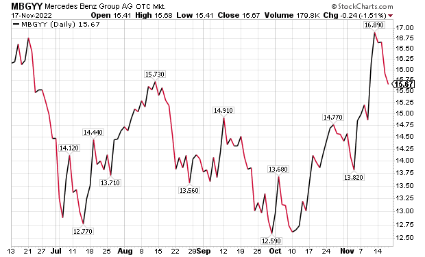 Mercedes-Benz is one of the world’s preeminent luxury car companies and sells vehicles almost worldwide, Skousen wrote to his Home Run Trader subscribers. The company also offers financing, leasing, car subscriptions, fleet management, digital services and insurance brokerage options.
