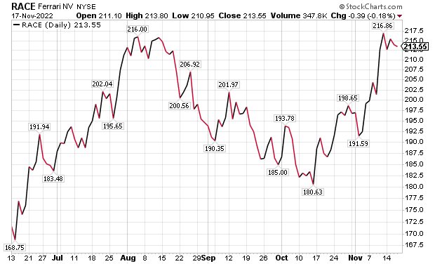 Ferrari received a $285 price objective from BofA, offering a slight premium to RACE’s current trading level due to ongoing volume, sales and earnings growth. This valuation is also supported by a discounted cash flow (DCF) analysis, BofA wrote in a recent research note. The multiples used for BofA’s valuation are a premium to the current trading range of a number of luxury companies in RACE’s peer group, but warranted, given Ferrari’s outsized growth opportunity, according to the investment firm.