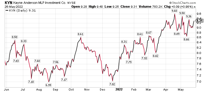 Kayne Anderson MLP Investment Co. (NYSE: KYN) has jumped 1.54% in the last week, 3.71% in the past month, 11.89% in the past three months, 23.61% so far in 2022 and 24.04% in the past year, as of March 26.