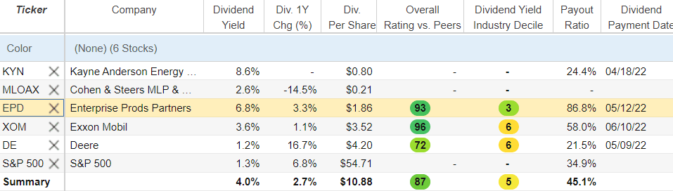 I personally have owned Enterprise Products Partners since shortly after the 2020 stock market crash when I purchased the stock as it started to recover. The stock has been trending upward since the end of 2021 and is projected to keep climbing as oil prices remain high or even rise further with Russia waging its war in Ukraine and seizing control of additional land in that nation’s eastern region in violation of international law. Russia in facing economic sanctions from the 27-nation European Union (EU), the United Kingdom, the United States, Canada, Japan, South Korea, Australia and other countries to pressure Putin to withdraw his troops from Ukraine.