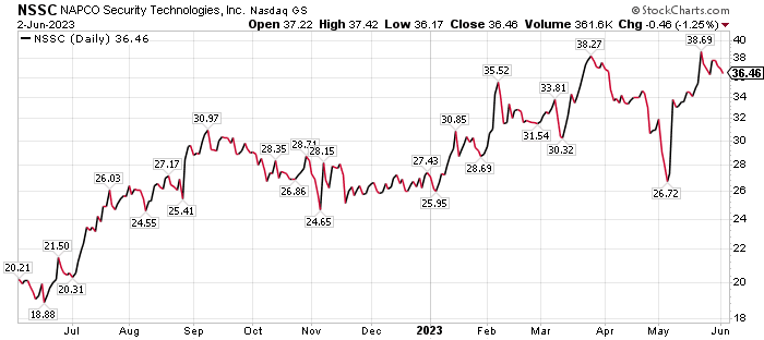 Napco Security initiated a dividend when it reported results on May 8. While the dividend yield is less than 1%, it’s a start, Connell counseled.