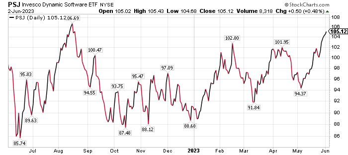 PSJ lost 27.73% in 2022 but is up 15.60% so far in 2023 and 5.27% during the last 12 months. The fund also offers a modest dividend yield of 2.0%.
