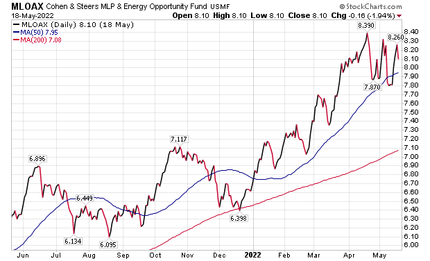 Bob Carlson, a pension fund chairman who also heads the Retirement Watch investment newsletter, recommended the Cohen & Steers MLP & Energy Opportunity Fund (MLOAX) to all the portfolios in his latest issue.