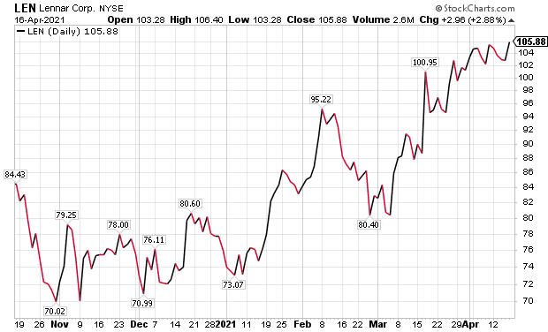 Woods told me that that dividend-paying homebuilder Lennar Corp. (NYSE:LEN) is taking advantage of these bullish housing conditions.