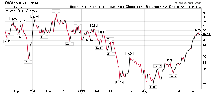 The “rate of change” is a critical theme driving relative stock performance for standouts such as Denver-based Ovintiv Inc. (NYSE: OVV), a producer of petroleum natural gas and natural gas liquids, BofA wrote in a recent research note. Ovintiv’s early results from its acquisition of properties are spurring enhanced productivity.