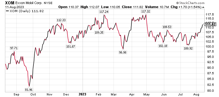 Jim Woods, who leads investment advisory services, personally recommends Exxon Mobil in the Income Multipliers portfolio of his Intelligence Report investment newsletter. Woods, who also heads the Successful Investing investment newsletter, as well as the Bullseye Stock Trader and High Velocity Options advisory services, has produced profitable returns on his XOM recommendation for his Intelligence Report subscribers.