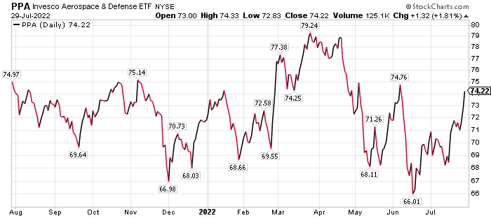 An investor interested in a diversified way to invest in this sector should consider an exchange-traded fund (ETF), said Bob Carlson, who heads the Retirement Watch investment newsletter. The ETF with the most consistent returns is Invesco Aerospace & Defense (PPA).