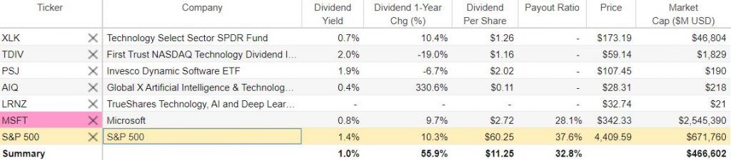 TDIV recently had 94 holdings, and its 10 largest positions accounted for 59% of its assets. The biggest weightings recently were Microsoft (NASDAQ:MSFT), Apple (NASDAQ: AAPL), Intel (NASDAQ: INTC), Broadcom (NASDAQ: AGVO) and IBM (NYSE: IBM). Roughly 13% of the fund is invested in communication services, while the rest fit into the technology sector.