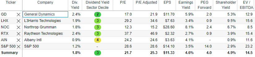 Albany International’s 0.9% dividend yield is just half the 1.8% yield of Northrop Grumman. The 1.9% dividend yield of L3Harris is the next highest, while Raytheon and General Dynamics tied for the lead among the four defense stocks for income investors to purchase with a dividend yield of 2.4%.