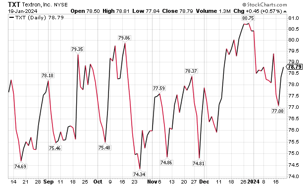 “Given the current volatility and nervousness of the market, I would not take any position until specifics on earnings and some signaling on future orders is given,” Connell counseled. With Textron next reporting financial results on Jan. 24, the wait for such guidance will not be long.