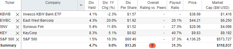 East West Bancorp Leads Four Dividend-paying Bank Investments to Purchase