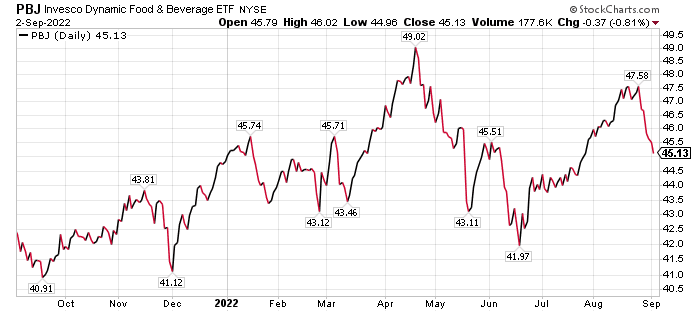 For a diversified position in food and beverage stocks, Carlson suggested an exchange-traded fund (ETF) such as Invesco Dynamic Food and Beverage (PBJ). The fund tends to include smaller, growth-oriented companies than others in the consumer staples sector, he added.