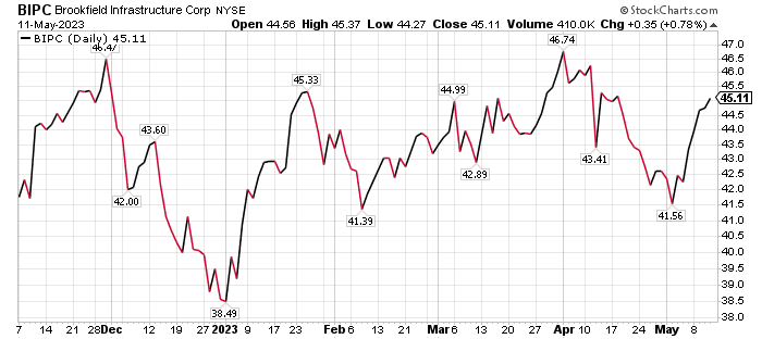 Brookfield Infrastructure Corporation (NYSE: BIPC), of Toronto, is up 10.66% since the stock was recommended by the Forecasts & Strategies investment newsletter on November 8, 2021. Mark Skousen, PhD, heads the Forecasts & Strategies investment newsletter and also teaches at Chapman University, where he is currently a Presidential Fellow. He also is a past winner for the university’s “My Favorite Professor” award.