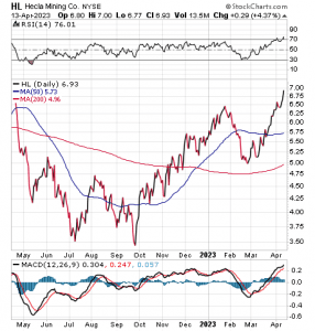 Hecla Mining Co. (NYSE: HL), of Coeur D’alene, Idaho, has rocketed 23.5% since it was recommended in the Fast Money Alert trading service in January. Led by Mark Skousen, PhD, and seasoned investor Jim Woods, Fast Money Alert recommended both Hecla and related call options that have soared since late 2022.