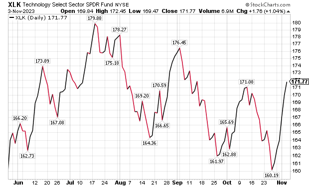 “The selling was disproportionately centered on the tech names, and it’s fair to say that tech weakness and earnings disappointment has been the main driver of the declines in the S&P 500 in the final weeks of October,” Woods told his Intelligence Report subscribers.