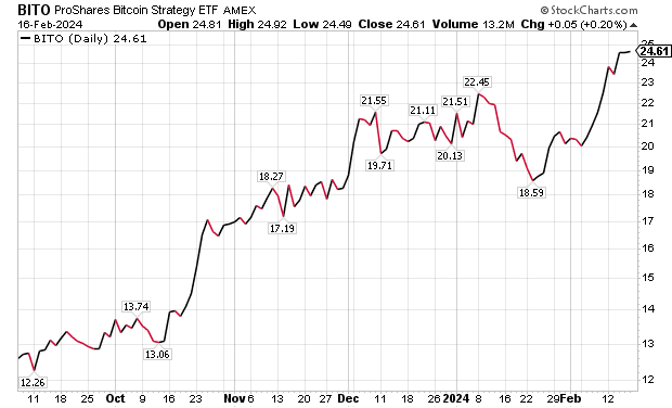 A 68.00% dividend profit was procured in February 2024 when Investment House Daily recommended call options in ProShares Bitcoin Strategy ETF (ARCX: BITO). As the first U.S. exchange-traded fund that seeks to correspond to the performance of bitcoin, BITO invests in bitcoin futures and does not invest in bitcoin. There is no guarantee the fund will closely track bitcoin returns.