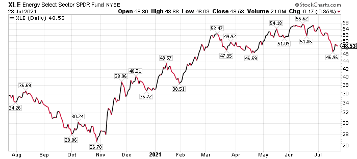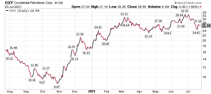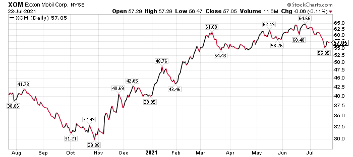 “Oil prices topped out in mid-July after OPEC stated it would increase production,” said Bryan Perry, who heads the Cash Machine investment newsletter, as well as the Premium Income, Quick Income Trader, Breakout Profits Trader and Hi-Tech Trader advisory services. As of July 19, WTI crude traded at $66.57/bbl. in what is the sharpest sell-off since late March. Assuming this pullback in crude is an orderly correction, following a torrid move higher year to date, it presents a compelling buying opportunity in some blue-chip energy stocks.”