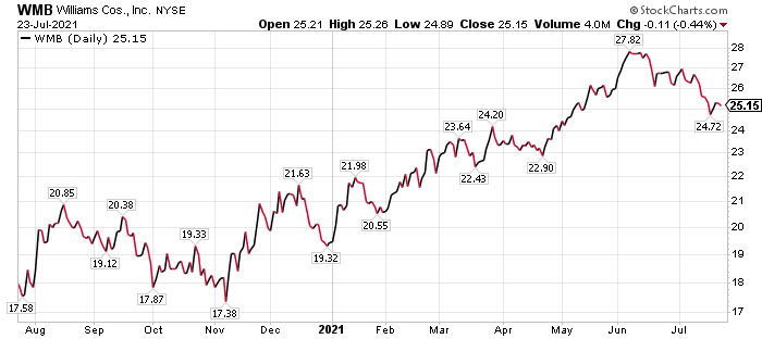 “I’d be surprised if cash flow on the horizon will support the dividend, so the market is right in being a little leery of this stock, Kramer said. “But while it will take some creative accounting to maintain a $0.41 quarterly payout, I’m thinking WMB can manage $0.30 per quarter without too much trouble… if management decides they need to cut at all. That’s worth a 4.5% yield, which is pretty good if you’re simply looking for a bond replacement over the next few years.”
