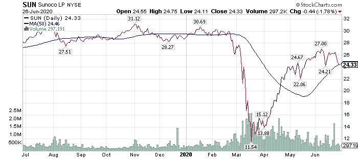 Bryan Perry, who leads the Cash Machine, Premium Income, Quick Income Trader, Hi-Tech Trader and Breakout Profits Alert advisory services, currently recommends oil refiner Sunoco L.P. (NYSE:SUN). The company’s dividend yield has reached a lofty 13.33% and Perry is a stickler for dropping any recommendations that cannot support their payouts.
